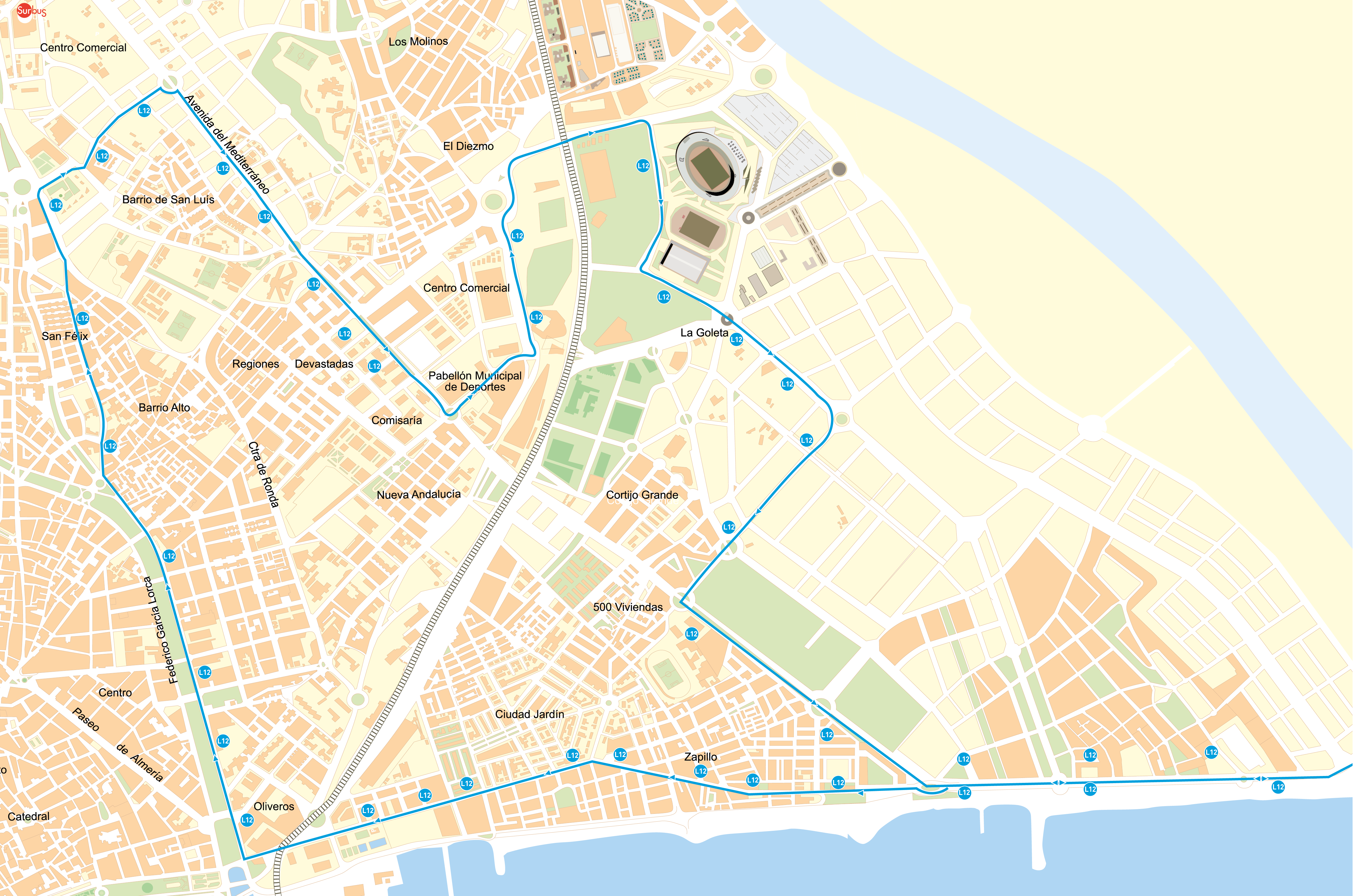 • Los servicios de las 21:48 - 22:14 - 22:40 finalizarán su trayecto en: Parada 150 → Nueva Almería