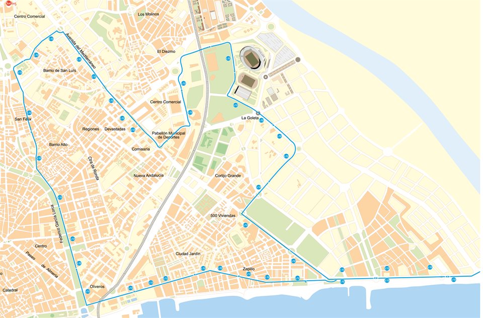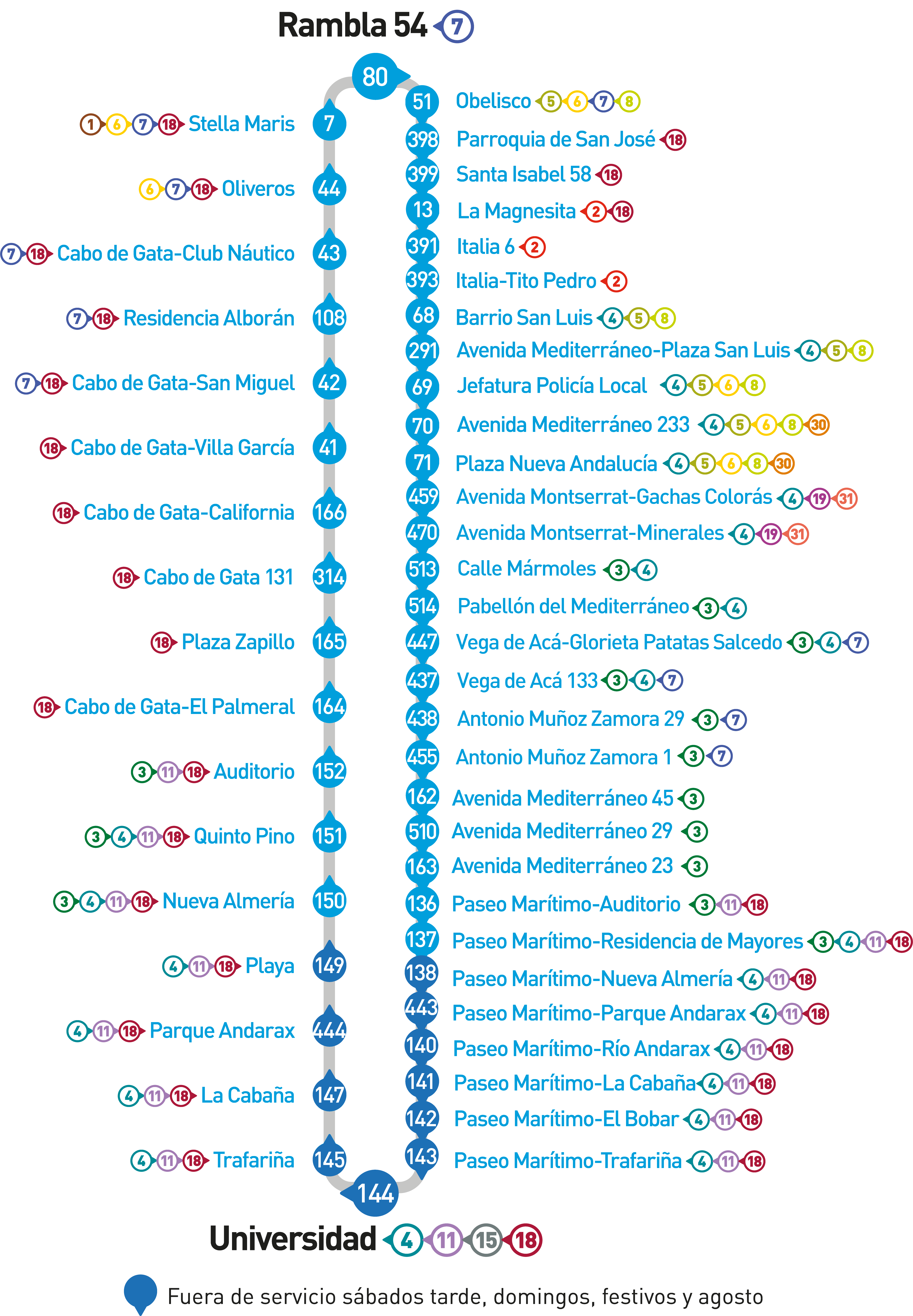 • Todos los servicios finalizarán su trayecto en: Parada 150 → Nueva Almería