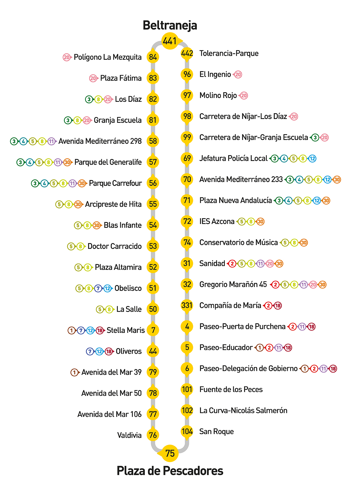 • Los servicios de las 22:00 y 22:20 finalizarán su trayecto en: Parada 50 → La Salle